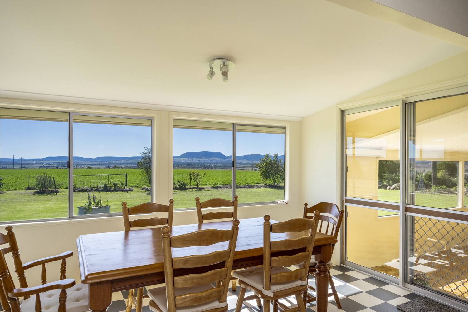 A pleasant drive along the fully bituminized road, then a short driveway from Junabee Road leads to the main homestead, elevated to take in sweeping 360-degree views across surrounding farmland and distant ranges. The recently renovated country-style homestead features three bedrooms, including a master with ensuite, polished timber floors, and an enclosed verandah. A second three-bedroom residence with a sleepout is accessed from Roona Road and is currently tenanted, offering an additional income stream or accommodation for extended family or workers.